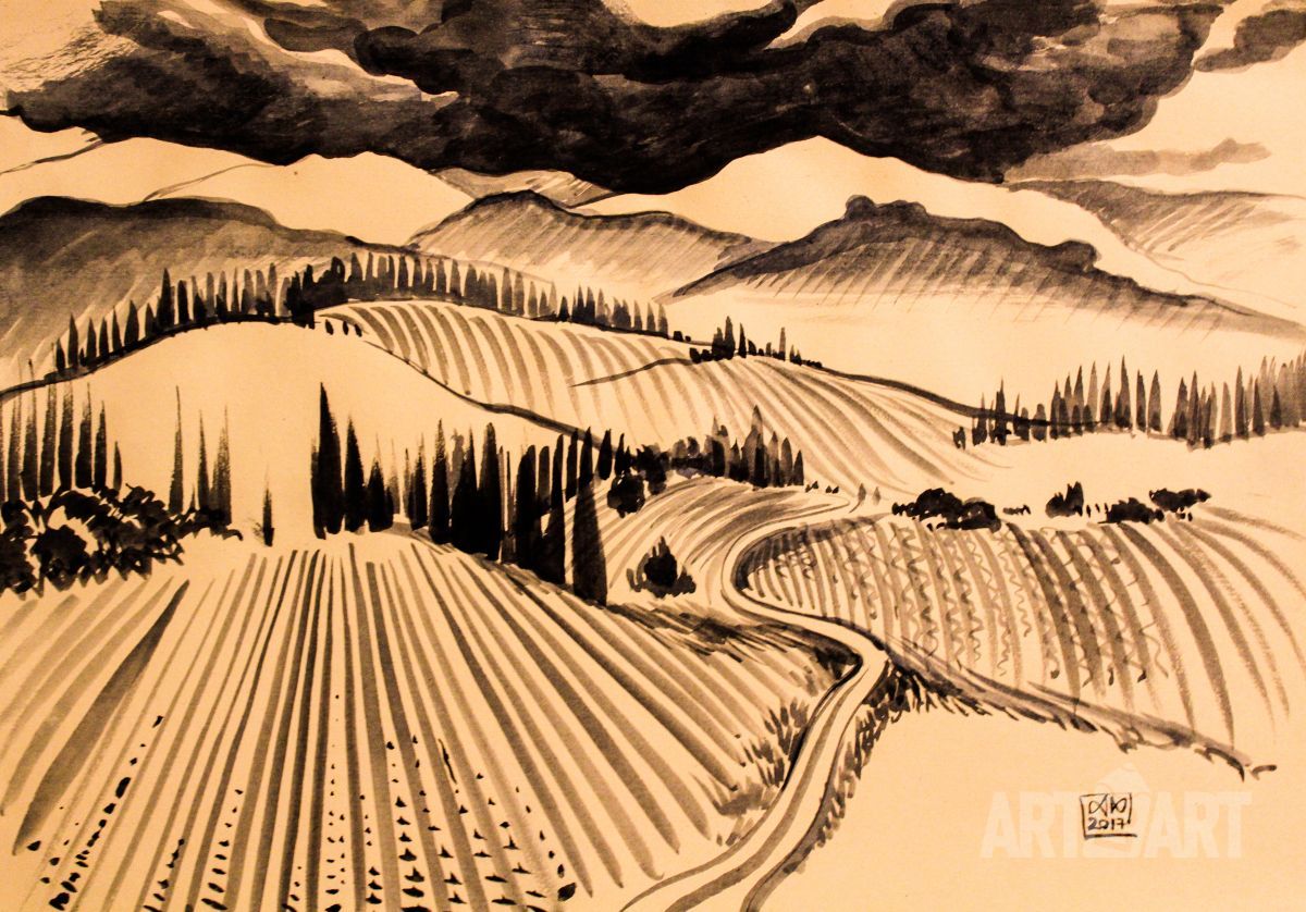 Пейзажная графика – один из самых распространенных жанров. Преимущественно, это зарисовки и эскизы, которые делают художники в процессе продумывания структуры и композиции своей будущей картины. Поэтому графический пейзаж обычно сначала выполняется в карандаше, а затем может дополняться акварелью или масляными красками. Такой рисунок природы, разнообразный по сюжету и предмету изображения, является для художника основой для дальнейшей нюансировки деталей и более тщательной цветовой проработки тех или иных ландшафтных сцен.
