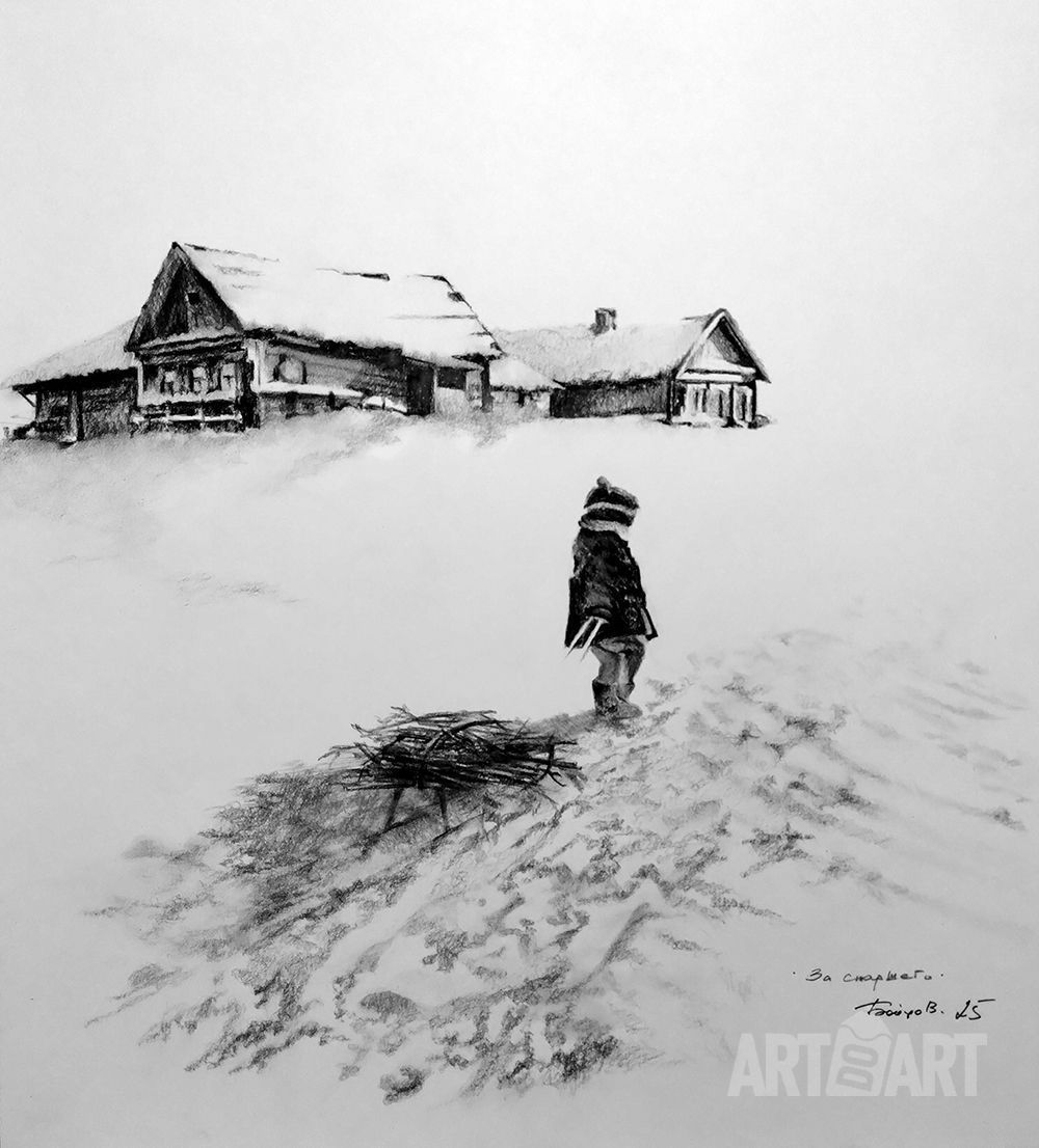 Графический рисунок Уголь, Пейзаж