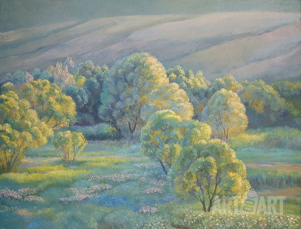 Авторское прочтение вечной темы о сотворении мира. Этот космогонический миф отражается в легендах всех народов. Издревле людям свойственно представлять надприродные силы в виде антропоморфных персонажей. На картине Бог-творец спокойным взглядом окидывает созданный им мир, как-будто заранее догадываясь о его непростой и противоречивой судьбе.