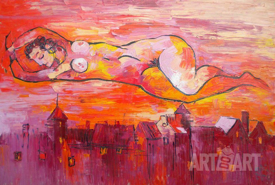 живопись, масло, женщина, экспрессионизм, обнаженная, Даная, релакс.