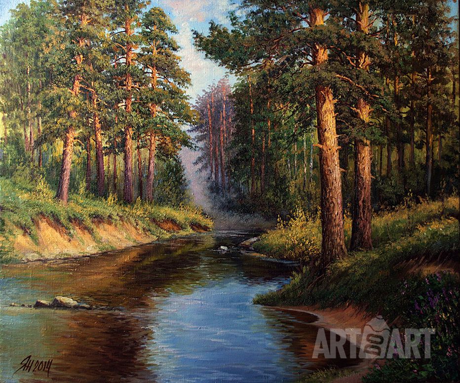Очень красивая композиция маслом. Она детализировано нарисована, имеет отличное построение и реалистичные цвета. Когда смотришь на нее, прямо успокаиваешься и ощущаешь аромат леса. Автор очень талантлив.