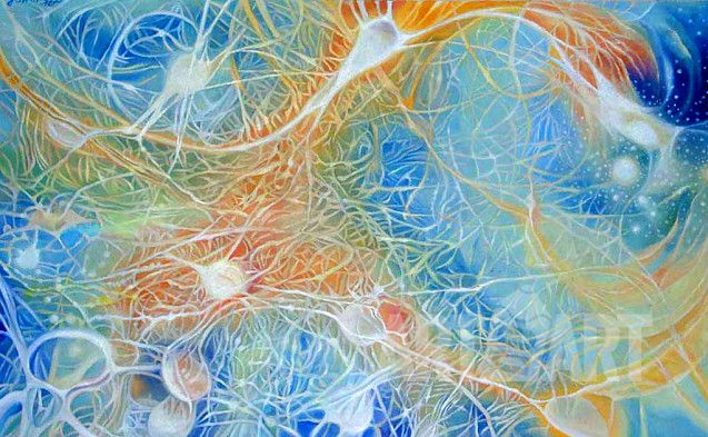 (Картина - предостережение!) На картине, я сжигаю видео-кадр будущего, чтобы это Событие не осуществилось в реальности. За сжигаемым кадром, там, где голубая Земля, изображены космические мины, а в кадре - лазерное оружие поражающее объекты на планете...