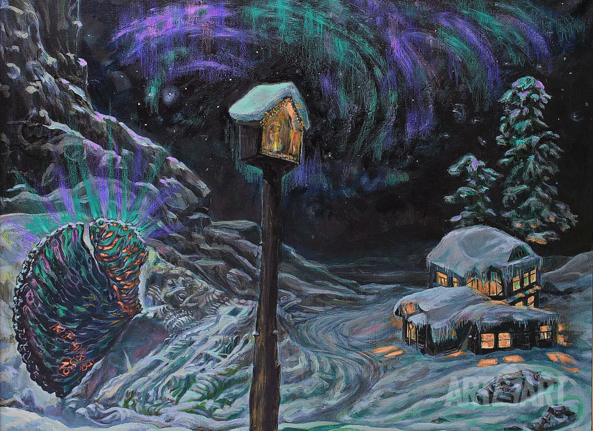 Появление НЛО в горном ущелье Оттуда. Monte Noire. ватман-масло 60х80 2005 for sale