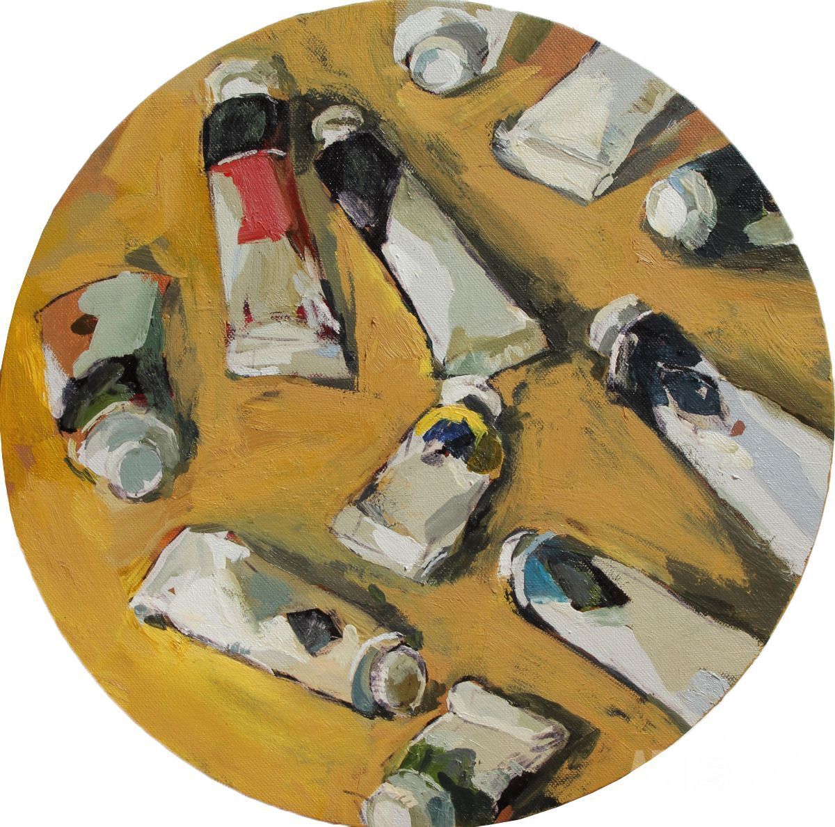 Выполнена маслом и маркерами на холсте.