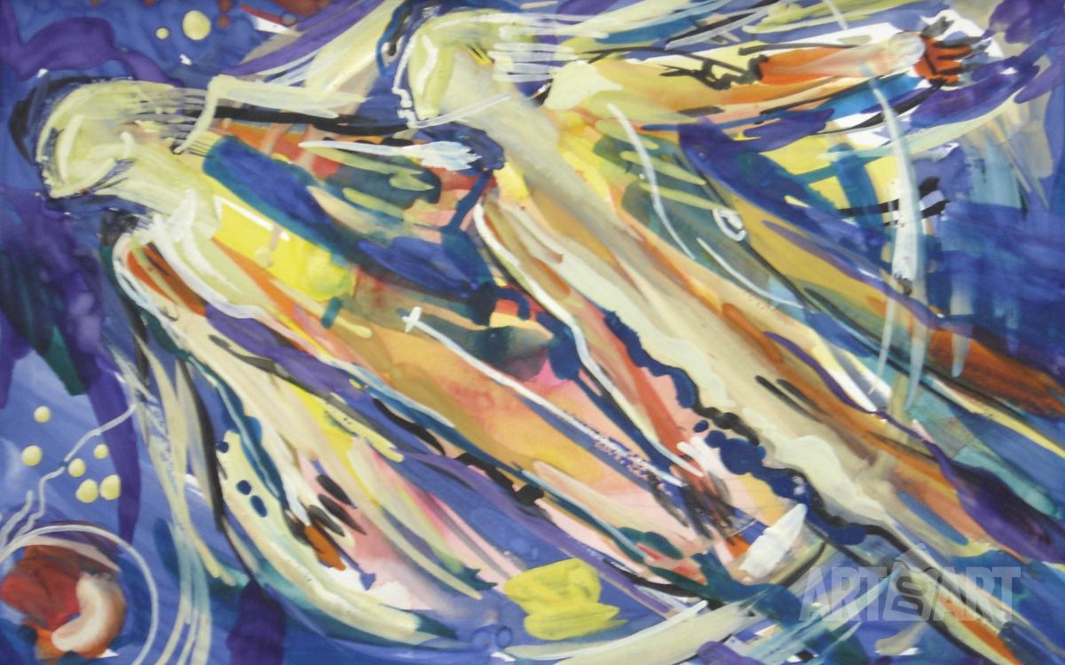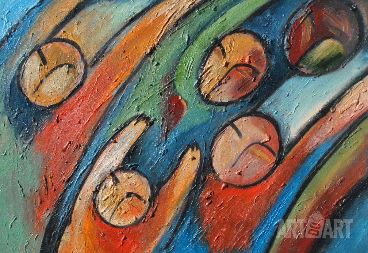 Танцующий шаман, бьет в бубен призывая духов помочь воинам окружающим его в будущей битве