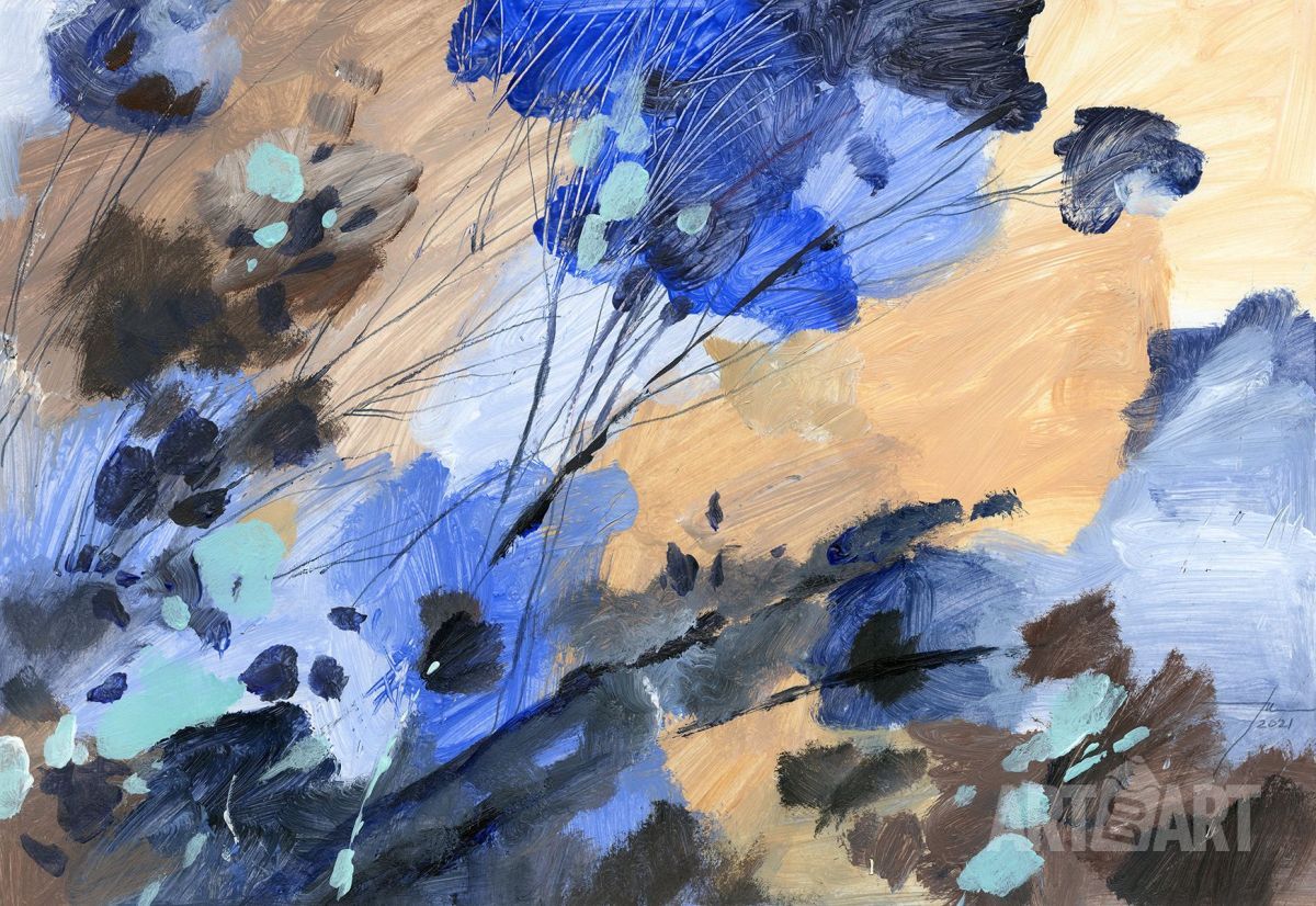 пейзаж, абстракция, цветы, весна, природа, графика, акрил, настроение.