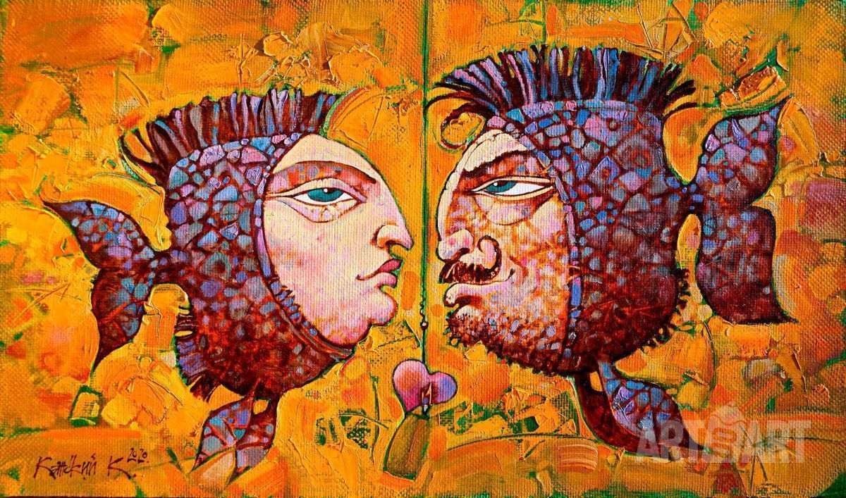 Картина создана по мотивам сказки «Красавица и чудовище». Монстра нужно поцеловать и тогда он превратится в прекрасного молодого человека... принца. Живописная работа является знаком - символом. Картина выполнена на Репинском холсте .