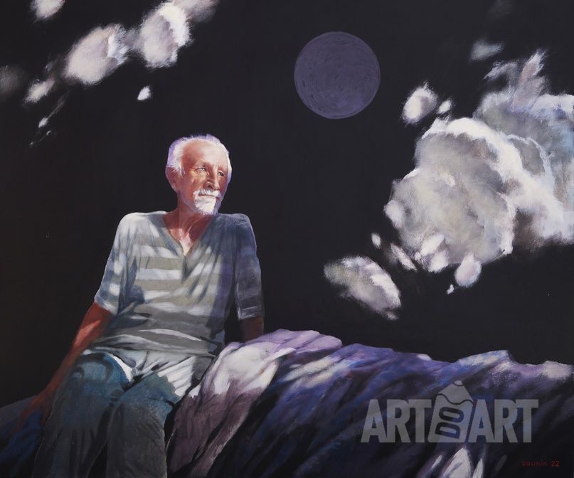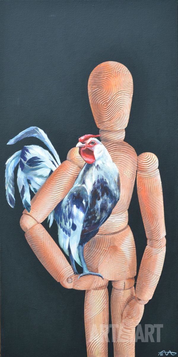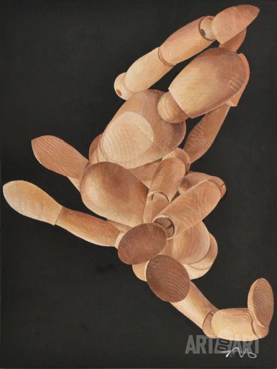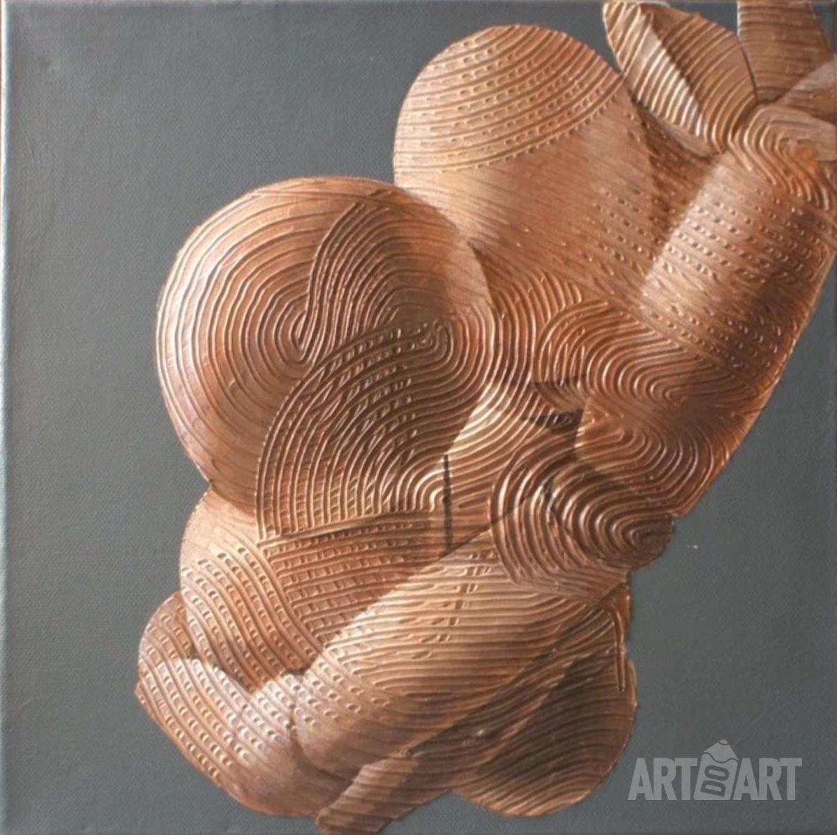The painting is made with acrylic paints on canvas, using texture paste. The figures themselves have a volume that is created not only by means of painting, but also by texture paste. These volumes do not complement each other, on the contrary, they seem to compete. And yet they continue to live and create one image.