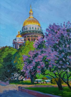 Этом летний пейзаж написан на пленэре в Орловской области. Едва заметная тропинка ведет через зеленые, цветущие холмы и луга к деревне потонувшей в зарослях ракит. Русский пейзаж.