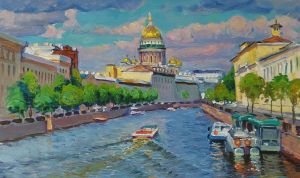 Пышное цветение сирени у Казанского собора. Картина написана с натуры, теплым, майским вечером.