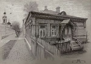 Картина «В поисках Шамбалы». Художник: Акимова Маргарита. Тонированная бумага. уголь, мел. Размер: 30х40см. 2021г.