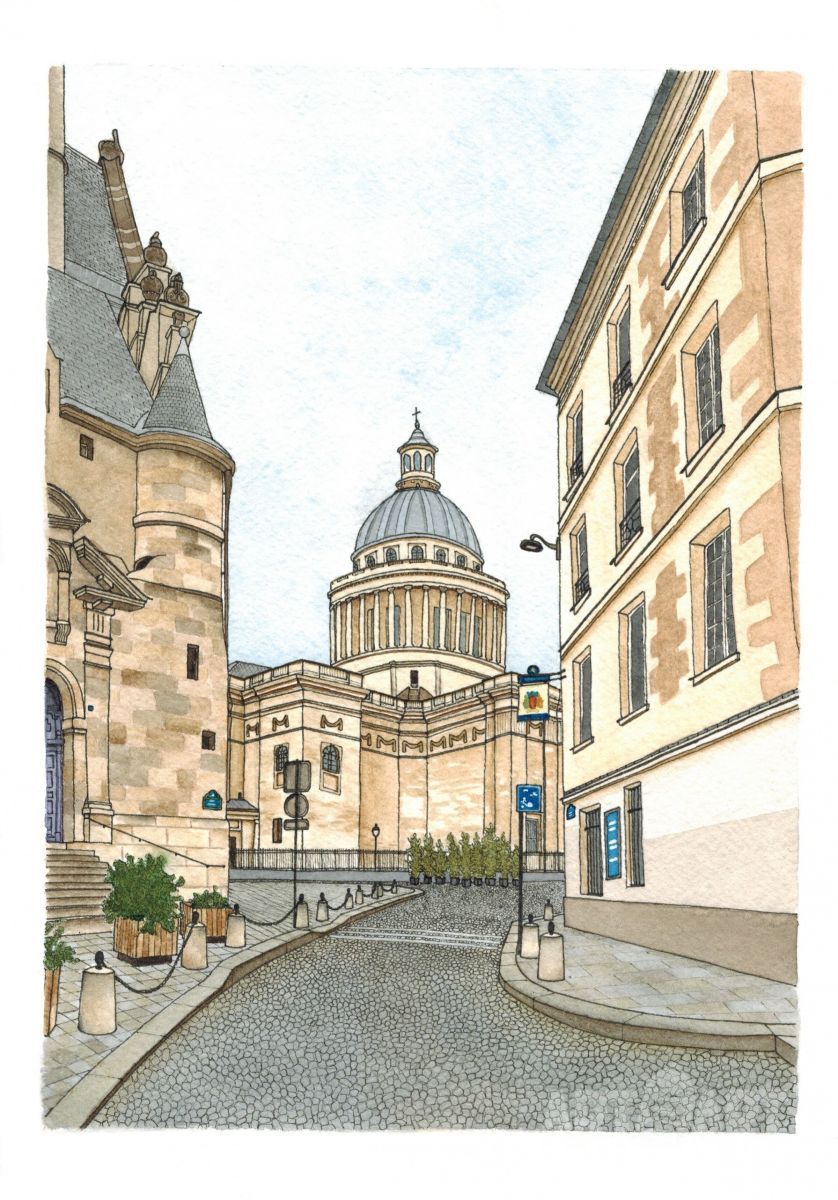 Картина выполнена акварелью и капиллярной ручкой на акварельной бумаге.