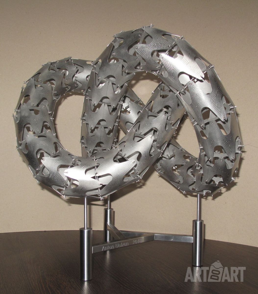 Эта настенная работа о природе на атомарном уровне: атомы могут присоединяться друг к другу, отдавая свои электроны соседним атомам, и взамен присоединяя электроны других атомов себе.