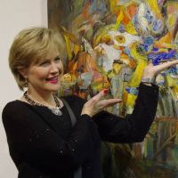 A vibrant and expressive work using the technique of volumetric painting. A female figure, composed of textured color fragments, creates a sense of depth, energy, and movement. The painting draws attention with its rich palette, complex texture, and decorative appeal.