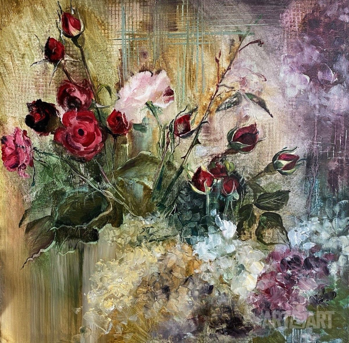 The bright, dynamic, and full of energy painting «Sunflowers» by Marina Orlova conveys to the viewer not just an image of flowers, but an explosion of feelings and emotions. The 30x30 cm canvas seems to be pulsating with life thanks to the bold and sharp strokes of the oil paint.
