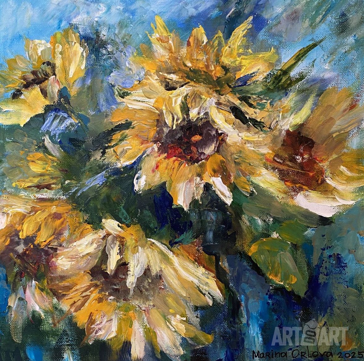 This 50x50 cm oil painting on canvas is part of the «Autumn. Hydrangeas.» triptych and is an elegiac reflection on the fading beauty of autumn nature.