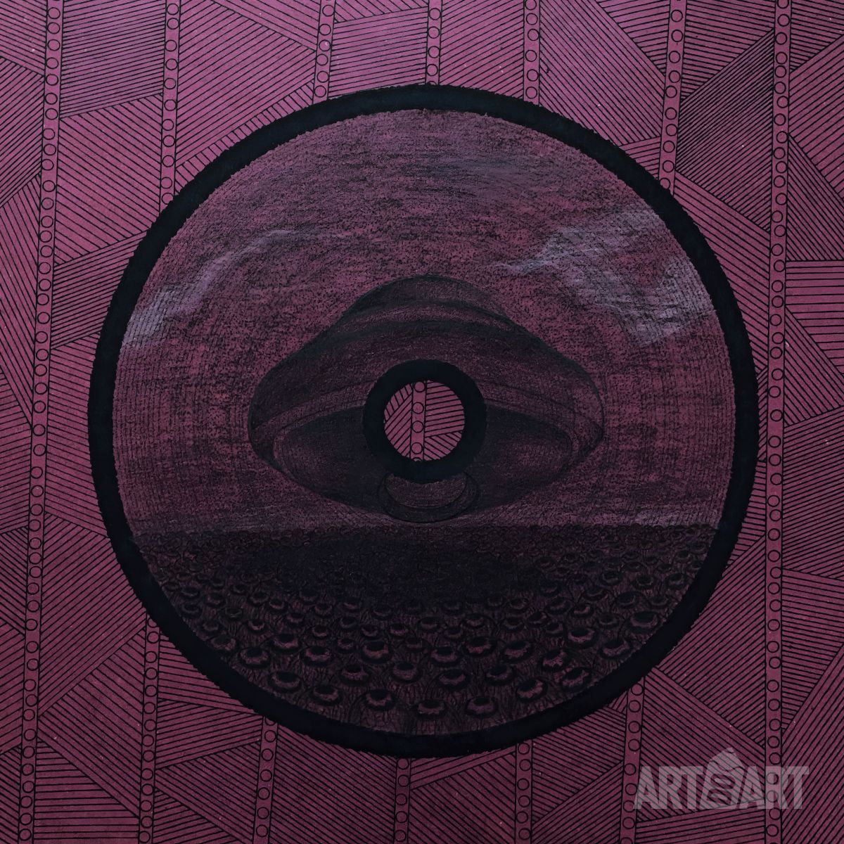 Знак Фантастическая абстракция с пейзажем Летающий корабль Земля из глаз