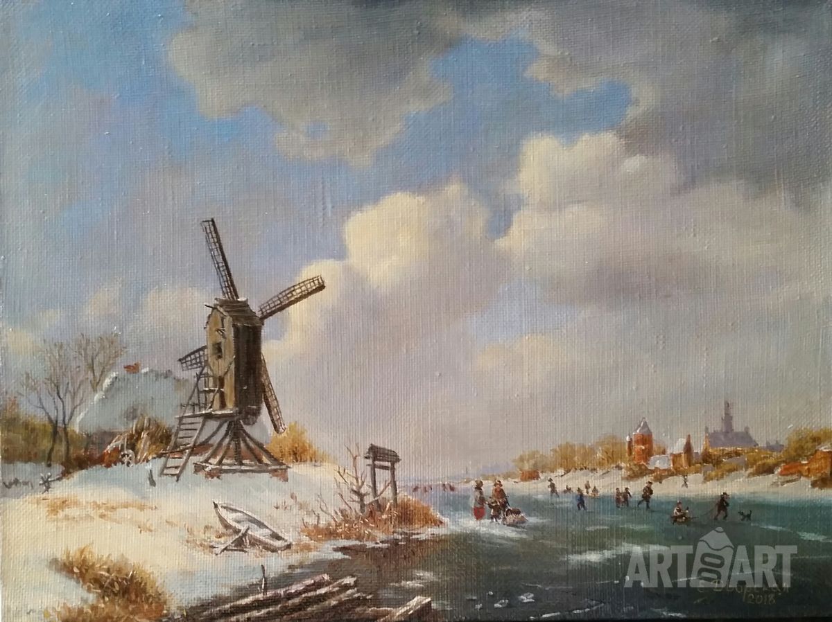 Антони Якобус ван Вейнгарт Собиратели дров на льду Копия