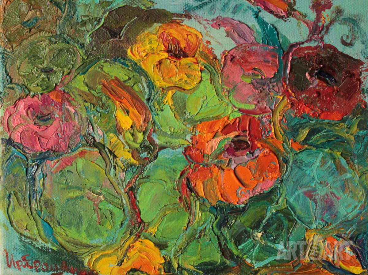 Работа решена в необычной пластической форме-наложение одного сюжета на другой, что придает большую содержательность работе.