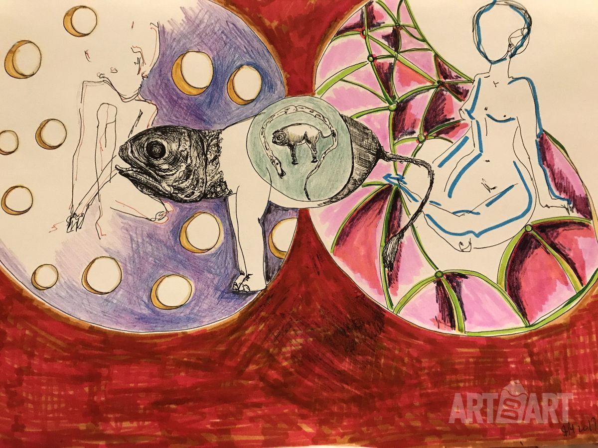 Organic graphic drawing on white paper 180g 29 x 42 cm.