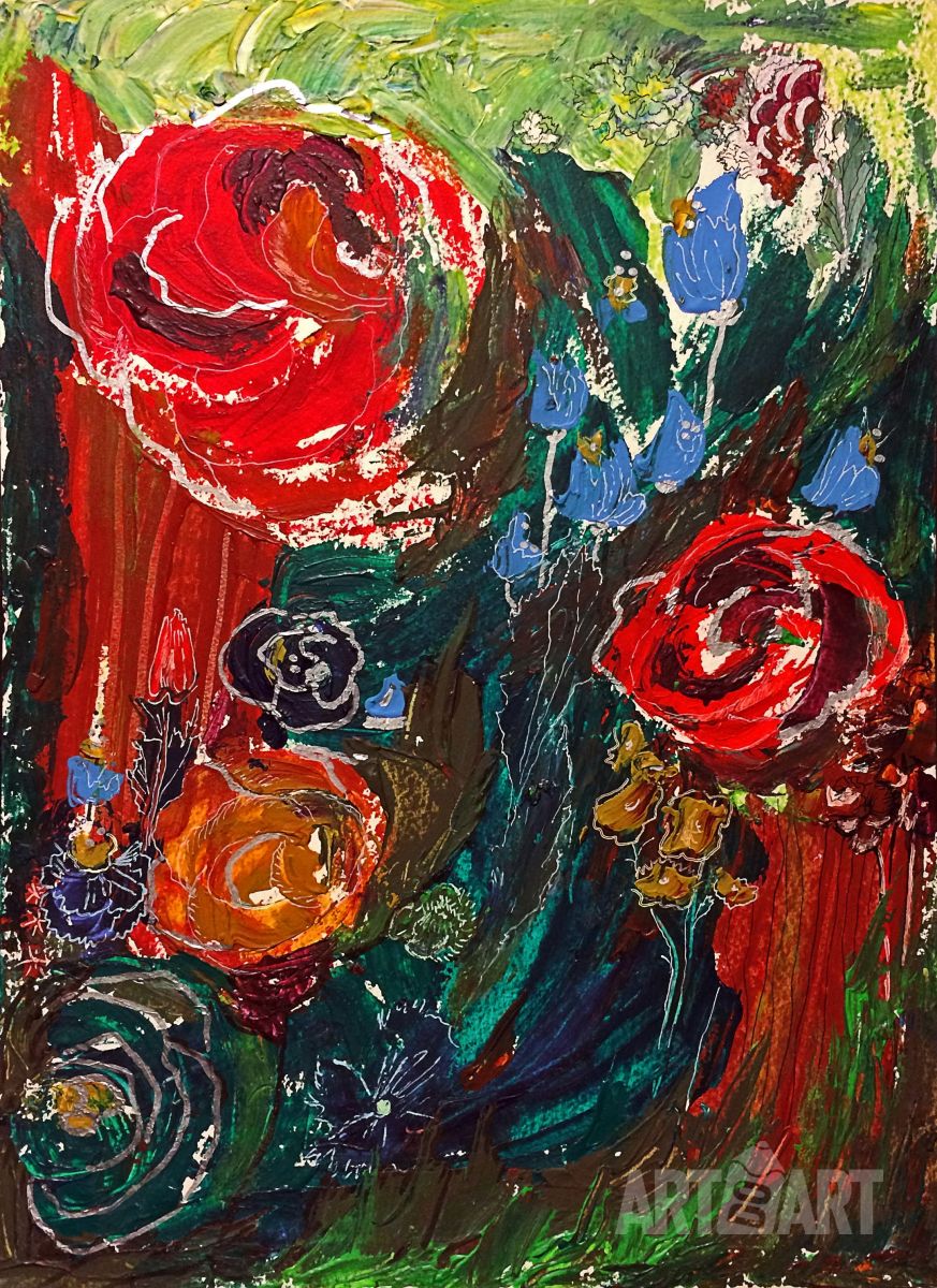 Работа выполнена в смешанной технике – акрил, сухая пастель