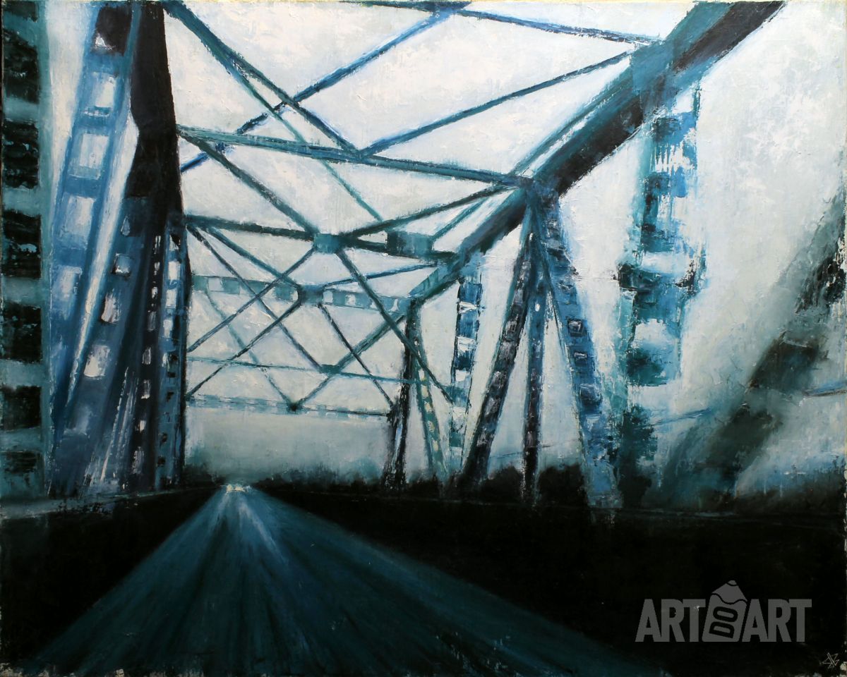 Картина впечатляет, смотрится монументально. Мост, как огромные стальные нити связывает два поколения, как два противоположных берега. Задумка мне очень понравилась, есть о чем подумать.