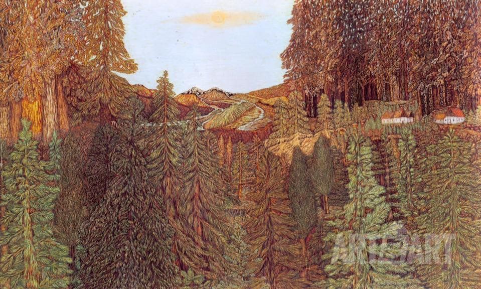 Цветная линогравюра с двух досок, входит в состав диптиха.