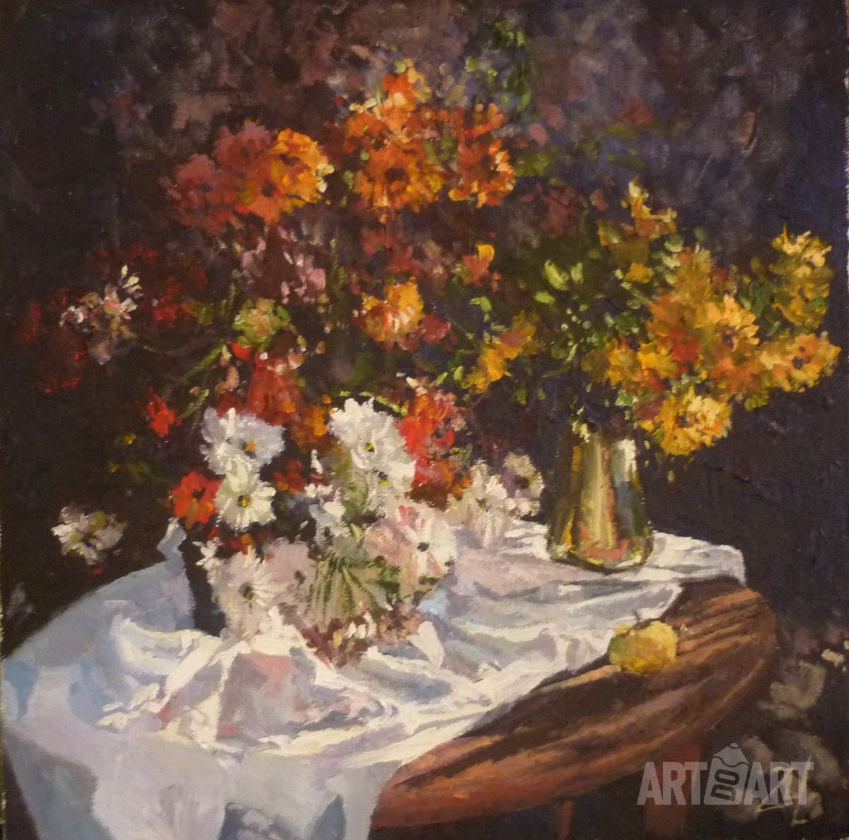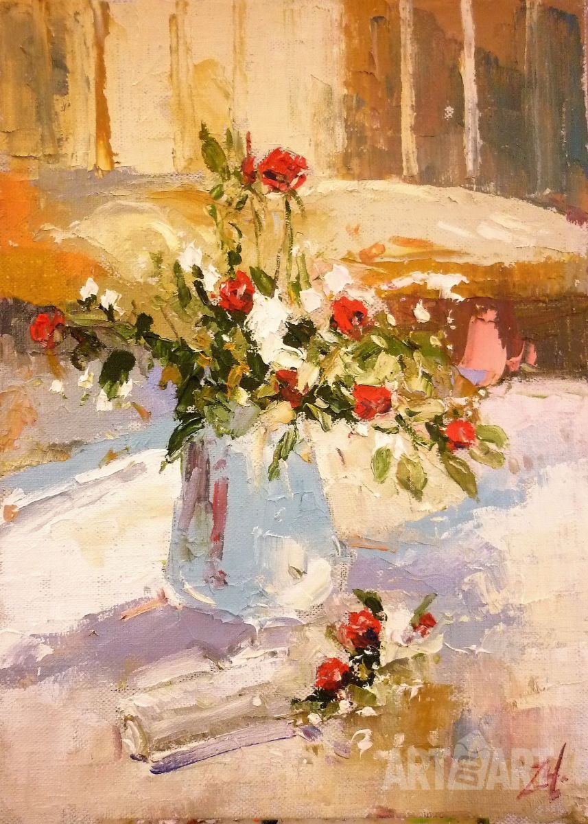 На картину можно смотреть долгое время и любоваться красивыми цветами, которые так оригинально отображены в этой работе.