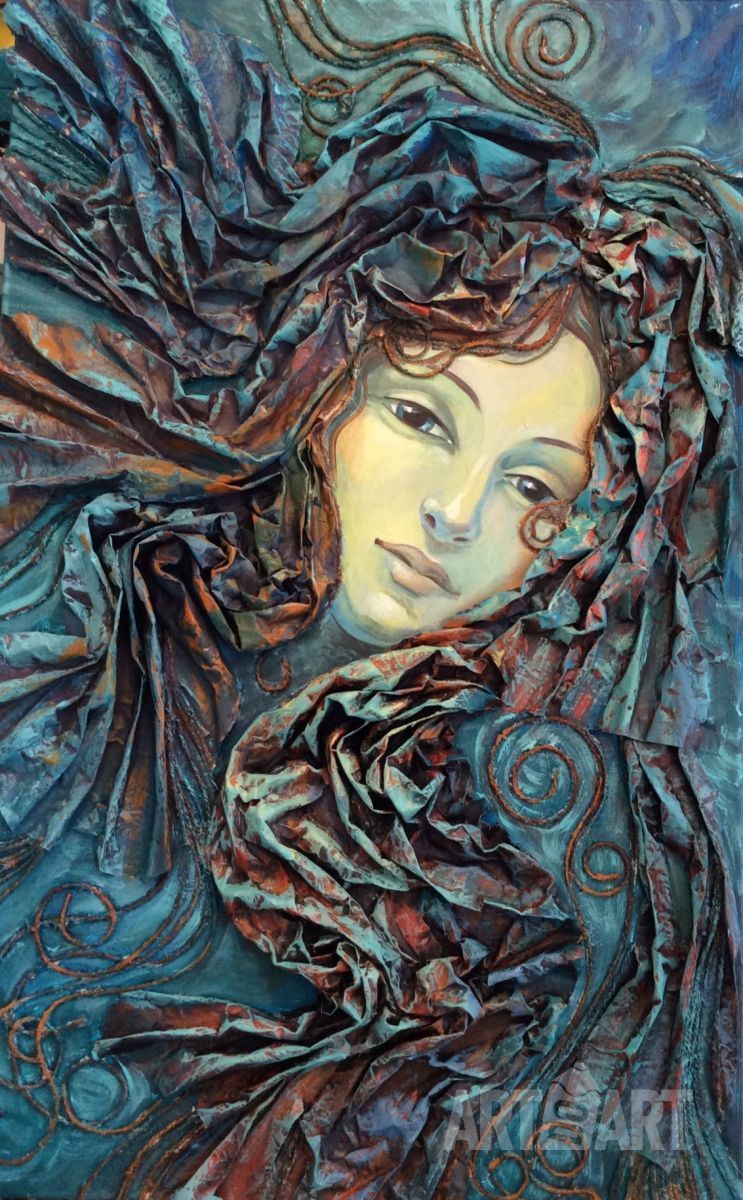 Картина отражает, как мне кажется, полет фантазии человека, яркую сущность человека на портрете. Лицо красивое, правильной формы и умиротворенное, из-за чего притягивает взгляд. Люблю такие картины, которые пишутся свободным способом, завиток идет в ту сторону, куда рука захочет пойти.