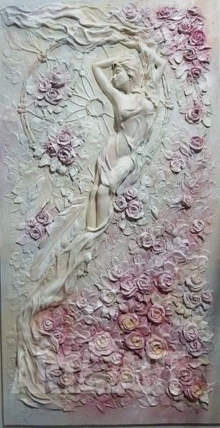 Панно «Пионы» Выполнено в технике свободной лепки. Изделие оригинально,не имеющее копий.