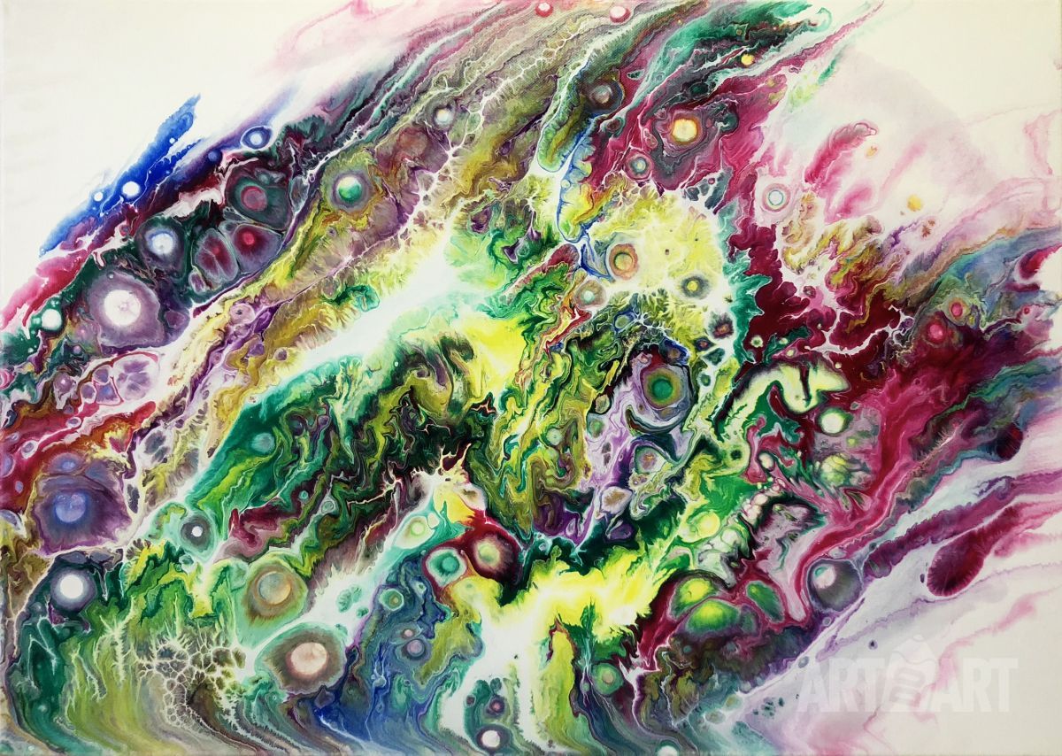 Нравятся абстрактные картины, которые вызывают самые разные ассоциации. Каждая работа запоминается.